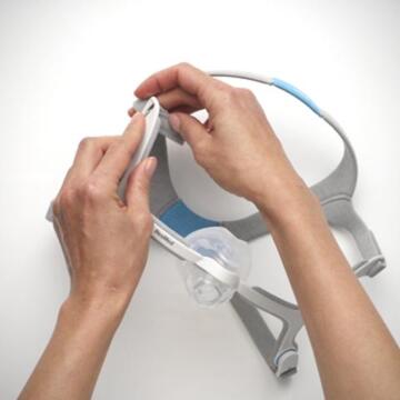 Silikonowa poduszka AirFit N20 jest wymienna z komfortową poduszką AirTouch N20 z pianki z pamięcią kształtu4, która jest nie tylko delikatniejsza dla skóry, ale została również zaprojektowana tak, aby ograniczyć powstawanie czerwonych śladów, umożliwiając dowolną zamianę. Każdy rozmiar poduszki można łatwo zatrzasnąć w tej samej ramce maski, zapewniając w ten sposób szerszy wybór.