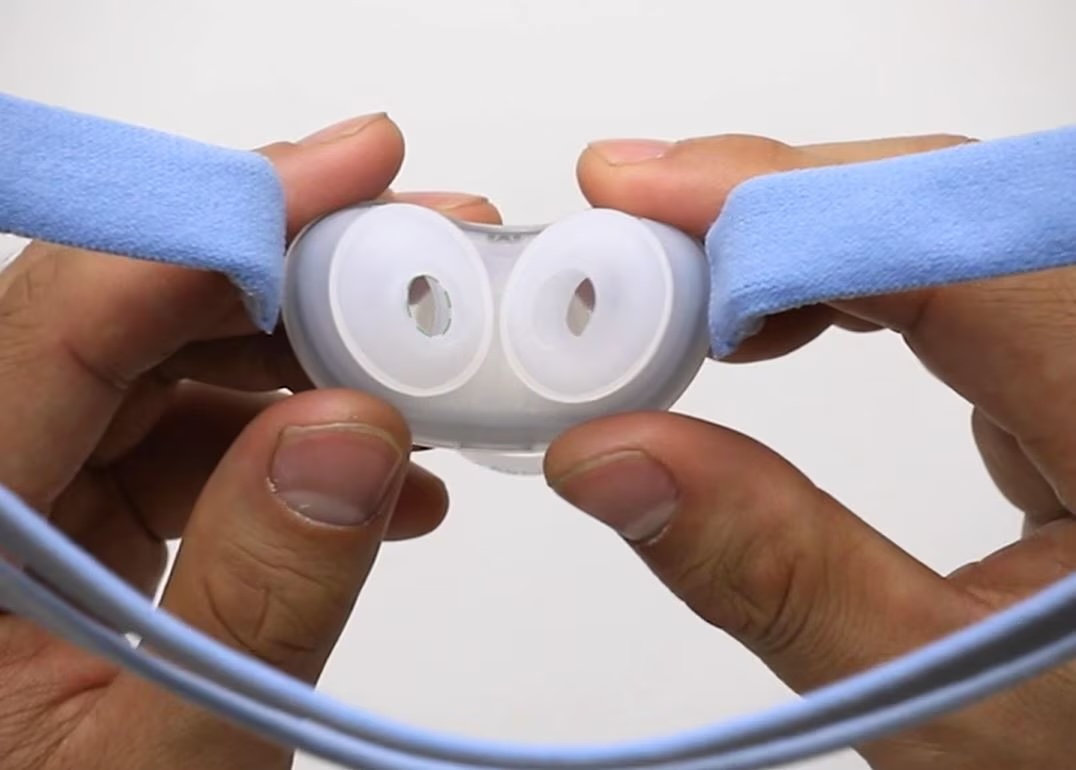 Poduszka podnosowa jest tak mała, jak tradycyjna maska z wkładkami, ale delikatnie przylega do nosa, a nie do nozdrzy.