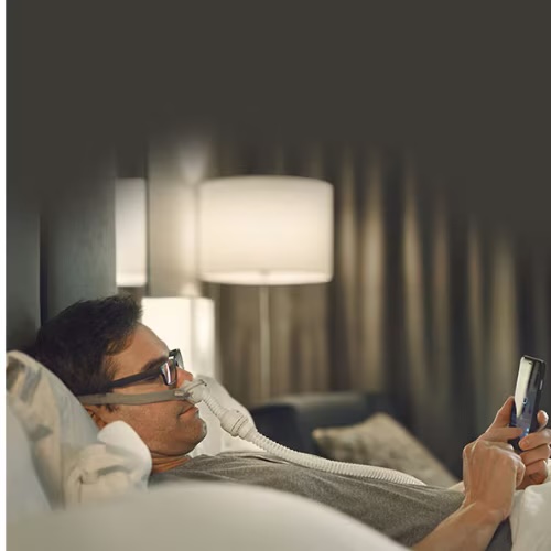 Dzięki połączeniu urządzenia AirMini z AirFit P10 AirMini można uzyskać kompletny system terapeutyczny, który został stworzony z myślą o jeszcze lepszym przystosowaniu się do zaleceń terapii.