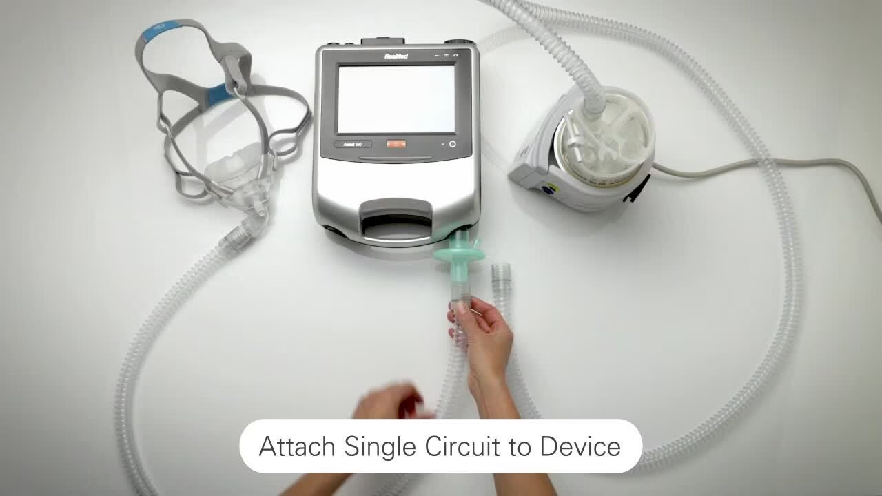 Ramię podtrzymujące obwód: Ramię podtrzymujące obwód bezpiecznie utrzymuje obwody wentylacyjne i ustniki w wygodnej pozycji podczas korzystania z respiratora Astral™.