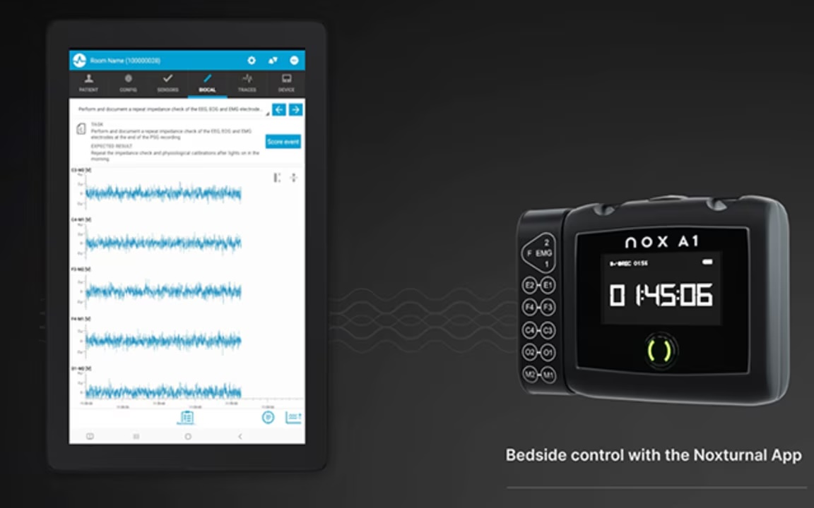 Aplikacja Noxturnal to inteligentne oprogramowanie Android™, które może być używane na telefonie komórkowym lub tablecie i które upraszcza konfigurację badań snu. Podłączona bezprzewodowo do rejestratora Nox A1s, oferuje szereg zaawansowanych funkcji, które zapewniają elastyczność obsługi: