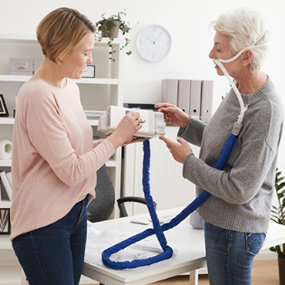 ** Filmy instruktażowe dotyczące korzystania z NIV w domu są przeznaczone wyłącznie dla profesjonalistów opieki zdrowotnej i opierają się na zaleceniach GAV z 2019 r., które są oparte na literaturze i opiniach doświadczonych terapeutów oddechowych. Protokół opieki pozostaje w gestii lekarza przepisującego leczenie, a ustawienia urządzenia muszą być dobierane z uwzględnieniem wymagań danego pacjenta.